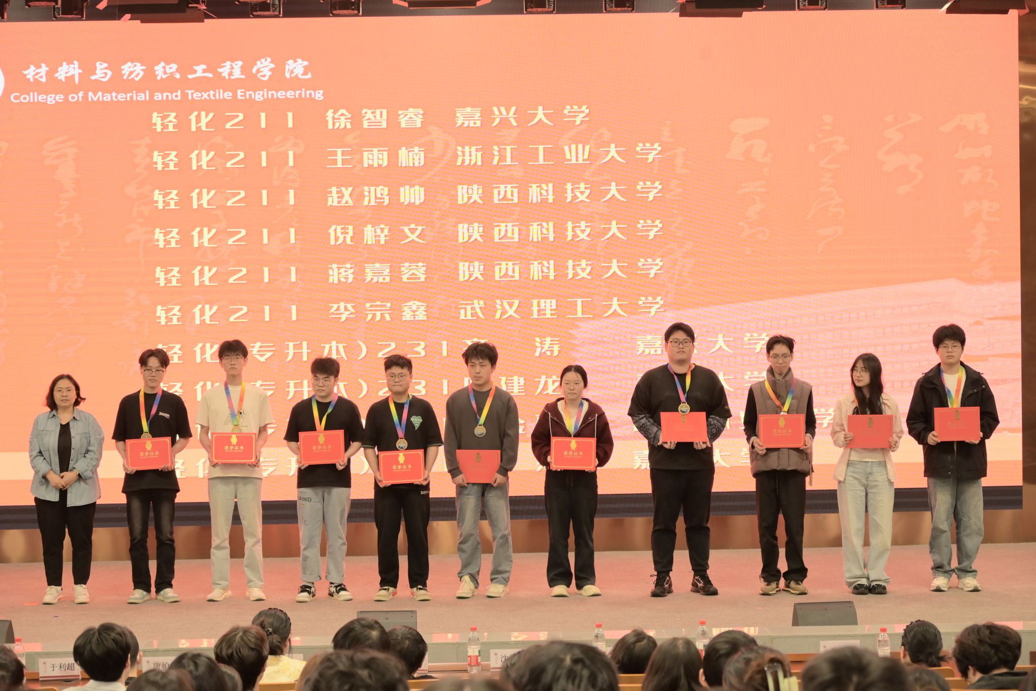学子再创佳绩。大会首先对2025届考研优秀学子和两个全员上岸的“考研学霸寝室”进行了表彰,颁发荣誉证书和奖牌。纺织214班班主任于利超老师做了班级考研指导分享。表彰大会上,老虎机