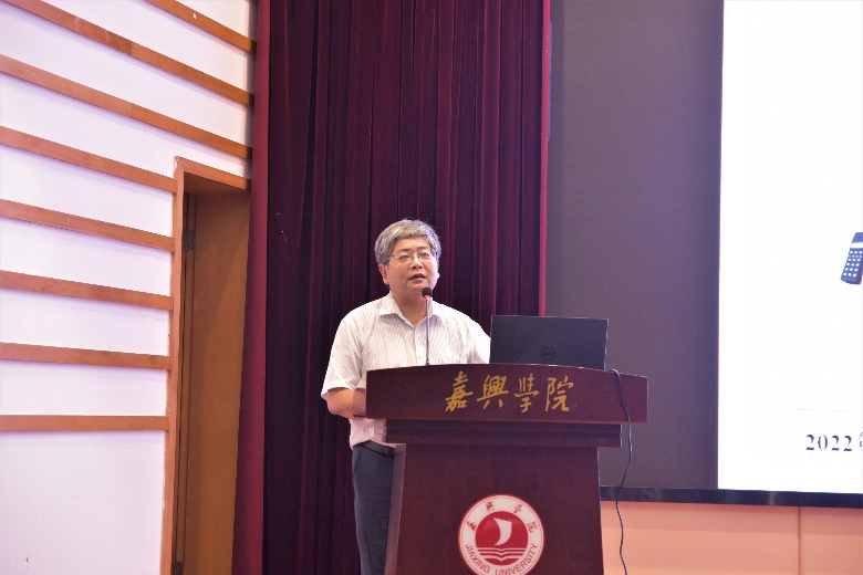 热烈欢迎“招生规模最大、招生省份最多、报到比例最高、年龄跨度最大、男女比例最高”的2022届全体新生,并结合招生大数据生动勾勒了新生“画像”,让大家短时间内彼此了解,增加归属感和融入感。同时他给同学们提出几点希望和要求:要及时调整心态,尽快转变角色;做好职业规划,强化能力培养;加强思想修养,培养高尚情怀。