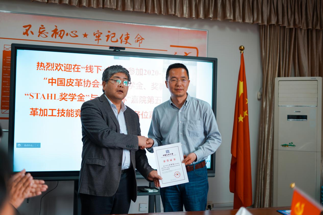 在10号楼419会议室隆重举行“中国皮革协会-杨正奖学金、奖教金”、“STAHL奖学金”和“‘鸿丰杯’嘉兴老虎机