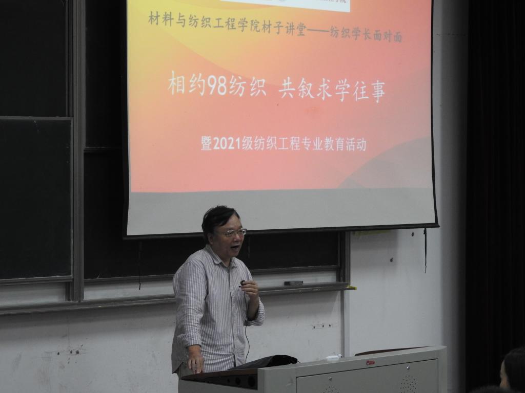 10月16日下午,老虎机 在13号楼报告厅举行纺织学长面对面暨2021级纺织工程专业教育活动。老虎机 部分教师、纺织专业 98届校友代表及纺织专业21级新生参加了此次活动。活动由纺织系主任曹建达主持。