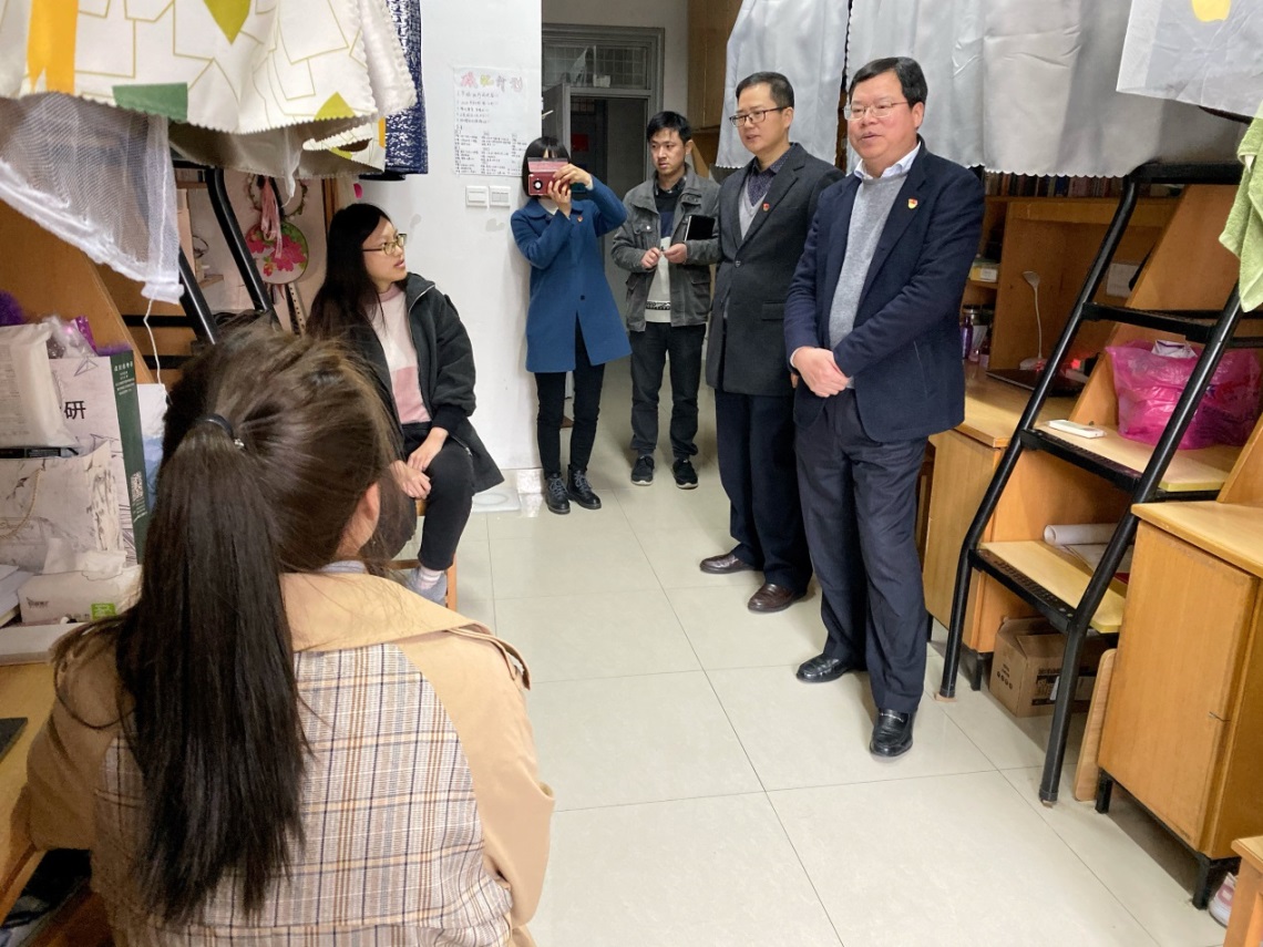 为促进学生健康成长,全面提高人才培养质量,2月28日下午,校党委副书记吴云达走访材纺老虎机 学生寝室,材纺老虎机 党委书记韩宝明,校党委办公室、材纺老虎机 学工办相关工作人员随同走访。