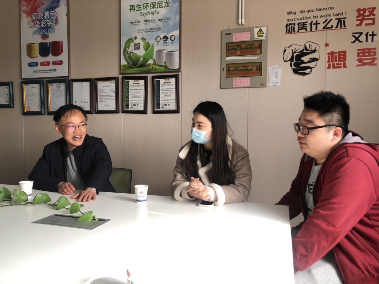 为了推进专业内涵建设,深化校企合作深度,拓宽合作渠道,1月20日上午,材纺老虎机 副院长黄立新、纺织系教师汪蔚及学工办王晓莹老师一行走访校企合作企业——浙江台华新材料股份有限公司,与企业相关负责人共同探讨专业建设。