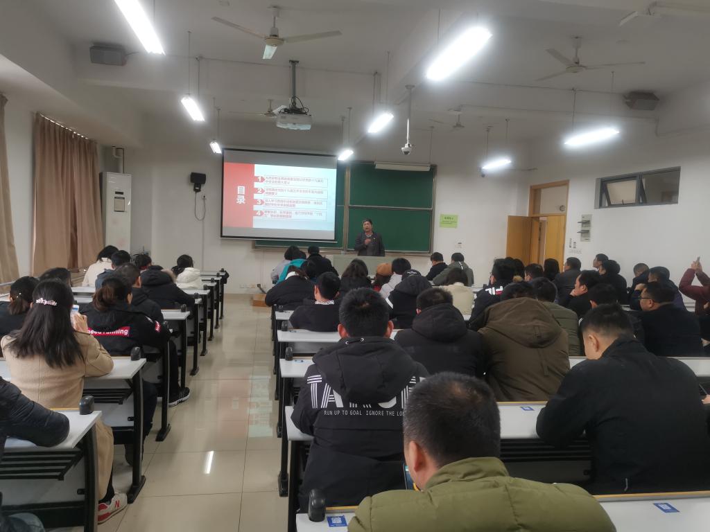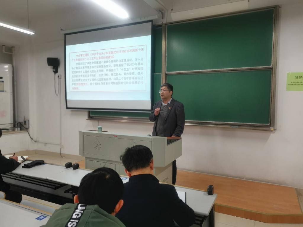 12月17日下午,院党委书记易洪雷为全体教职工作党的十九届五中全会精神宣讲报告。院党委副书记黄芳芳主持报告会。