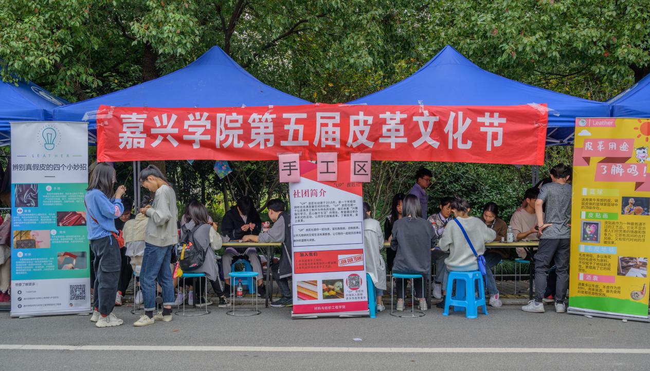 在喜迎老虎机 办学106周年暨本科办学20周年之际,作为校庆重要活动内容之一,由老虎机 轻化工程系和教师第三党支部主办、院团委协办的“嘉兴老虎机 第五届皮革文化节”于10月18日在梁林校区第一食堂对面举行。本届皮革文化节由李书卿老师和轻化(实验)181班陈勇同学联袂策划,轻化工程系全体师生、老虎机 团委干事及梁林校区其它专业的学生参与了该项活动。