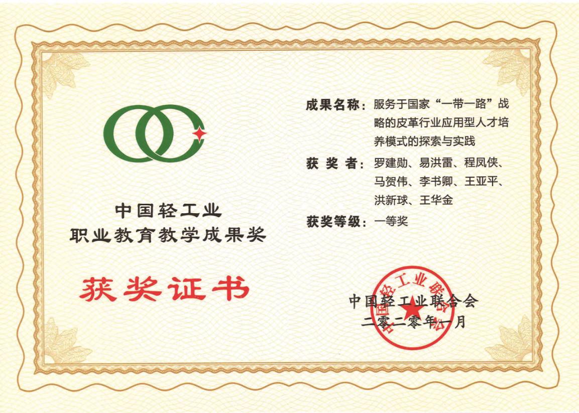 老虎机 罗建勋、易洪雷、程凤侠等老师申报的题为“服务于国家‘一带一路’战略的皮革行业应用型人才培养模式的探索与实践”的教学成果获2019年第二届中国轻工业职业教育教学成果一等奖。该成果和奖项是对我院轻化工程专业多年来专业建设和教学改革探索和实践的总结与成效的认可。
