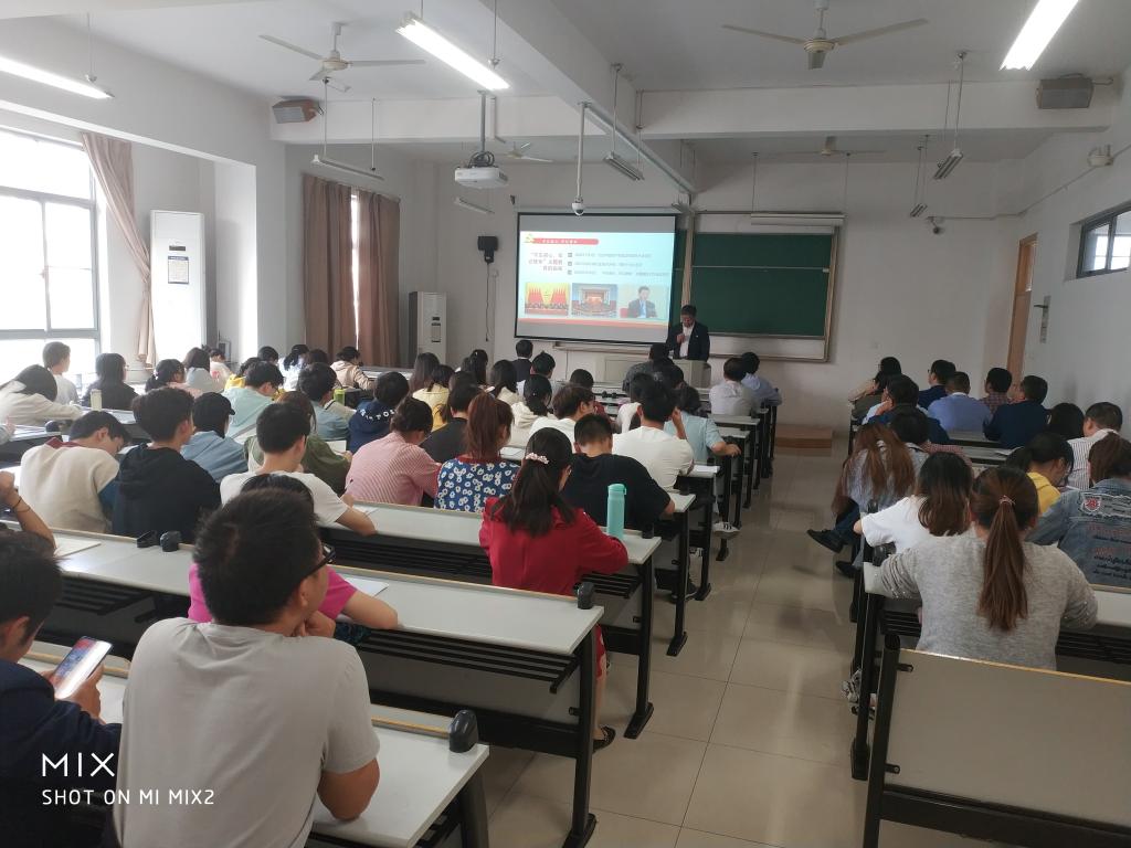 1024日下午,老虎机 党委书记易洪雷面向全体师生党员作题为《知史明责不忘初心,牢记使命担当作为》的主题教育专题党课。