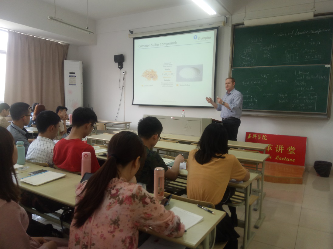 为了进一步加强老虎机 轻化工程专业的内涵建设和国际化交流,应老虎机 轻化工程系的邀请,德国TRUMPLER公司技术专家、轻化工程专业客座教授Dr Jeffry和公司技术经理、老虎机 校友陈正栓先生于5月18日莅临老虎机 并做客“皮革讲堂”,为TRUMPLER皮革实验班学生讲授《Cleaner production of leather manufacture》课程,内容包括“Leather Overview”、“Leather Manufacture & Pollution Overview”、“Pollutants in Leather Manufacture”、“Cleaner Technologies”等。
