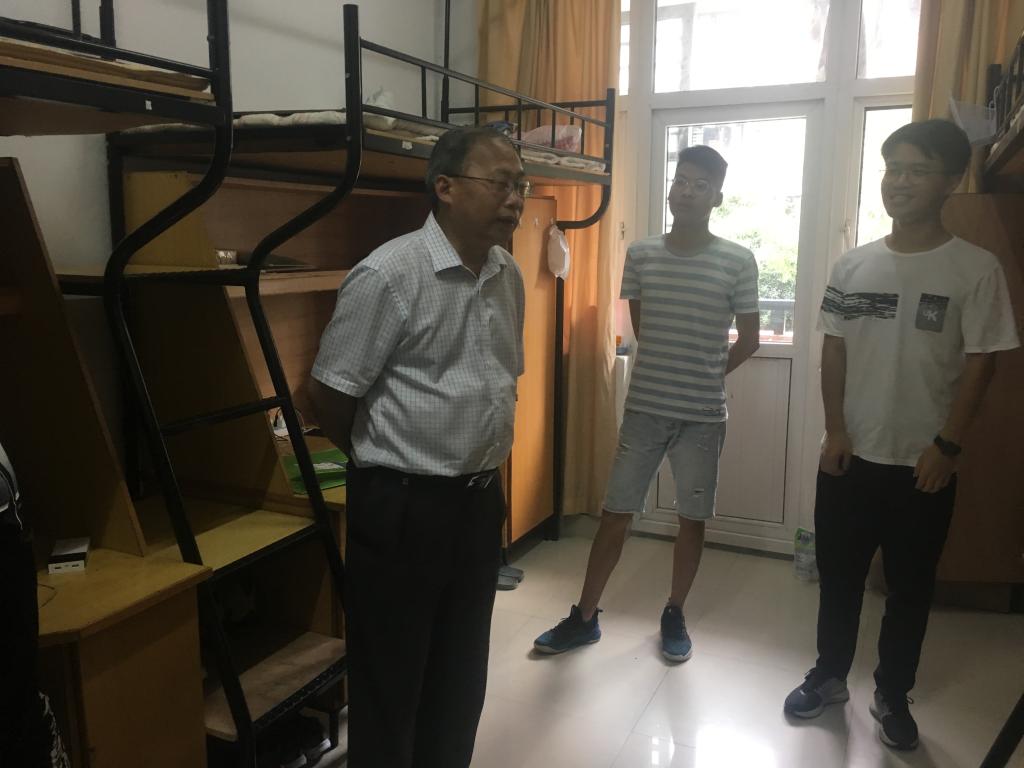 9月1日下午,校党委副书记吕延勤深入新生寝室,与院领导、辅导员一起慰问刚刚报到的2018级新生。