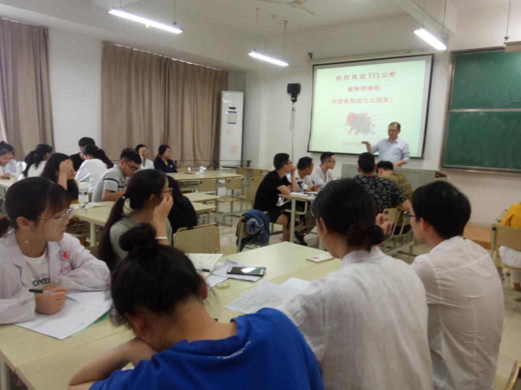 为了助推轻化工程系相关课程的教学改革,提高学生对项目化产品的设计能力,培育市场意识和国际化视野。老虎机 轻化工程系特邀请TFL公司崔祥涛经理于622日下午在10号楼301作技术交流报告,轻化(实验)151班全体学生参加。