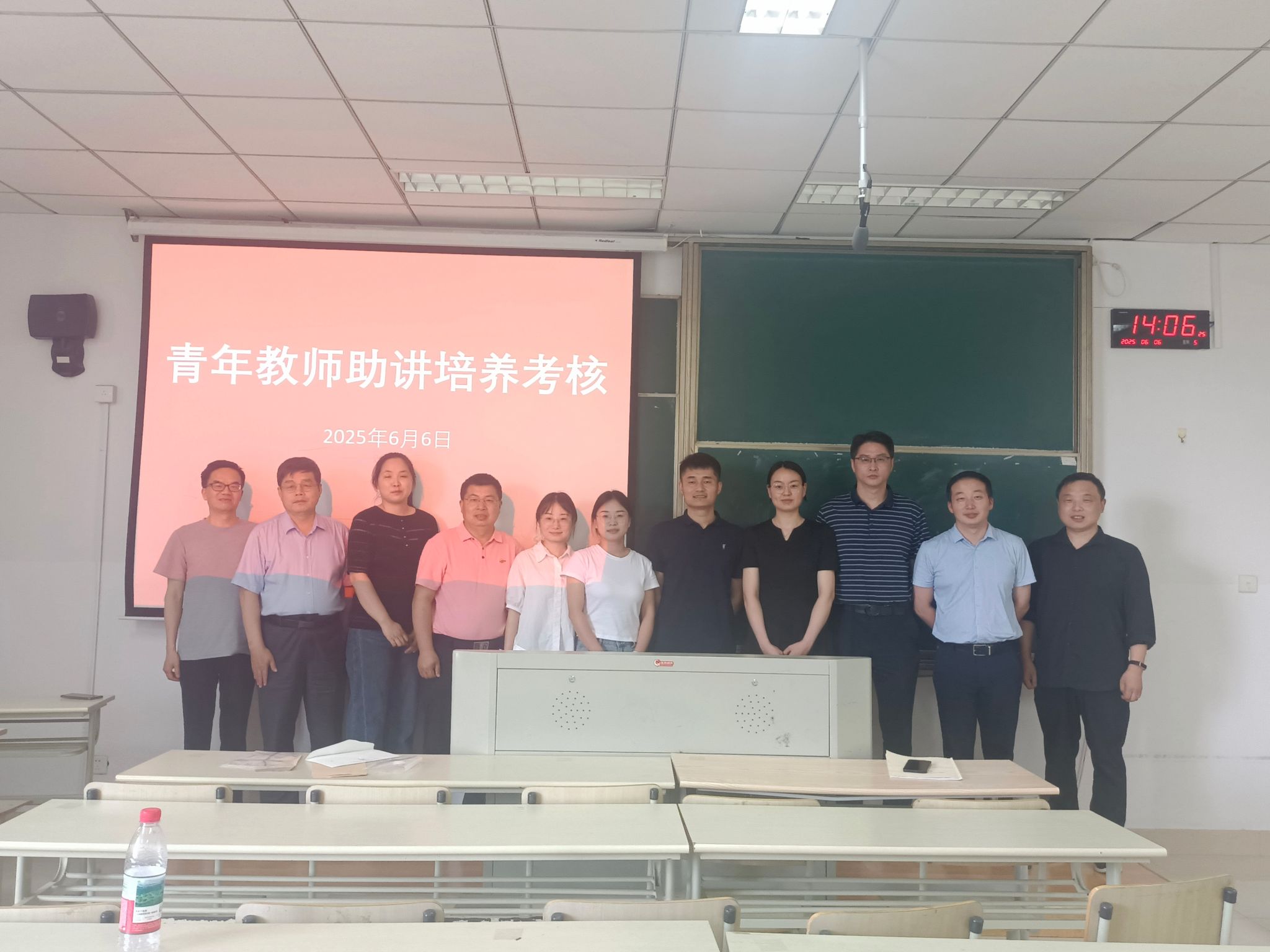 专家组对四位青年教师从板书、教学内容、教学设计和教学方法等方面进行了提问和点评,并给出了改进建议。四位青年教师均顺利通过本次助讲培养试讲考核。最后,青年教师与导师、专家组进行合照留念。