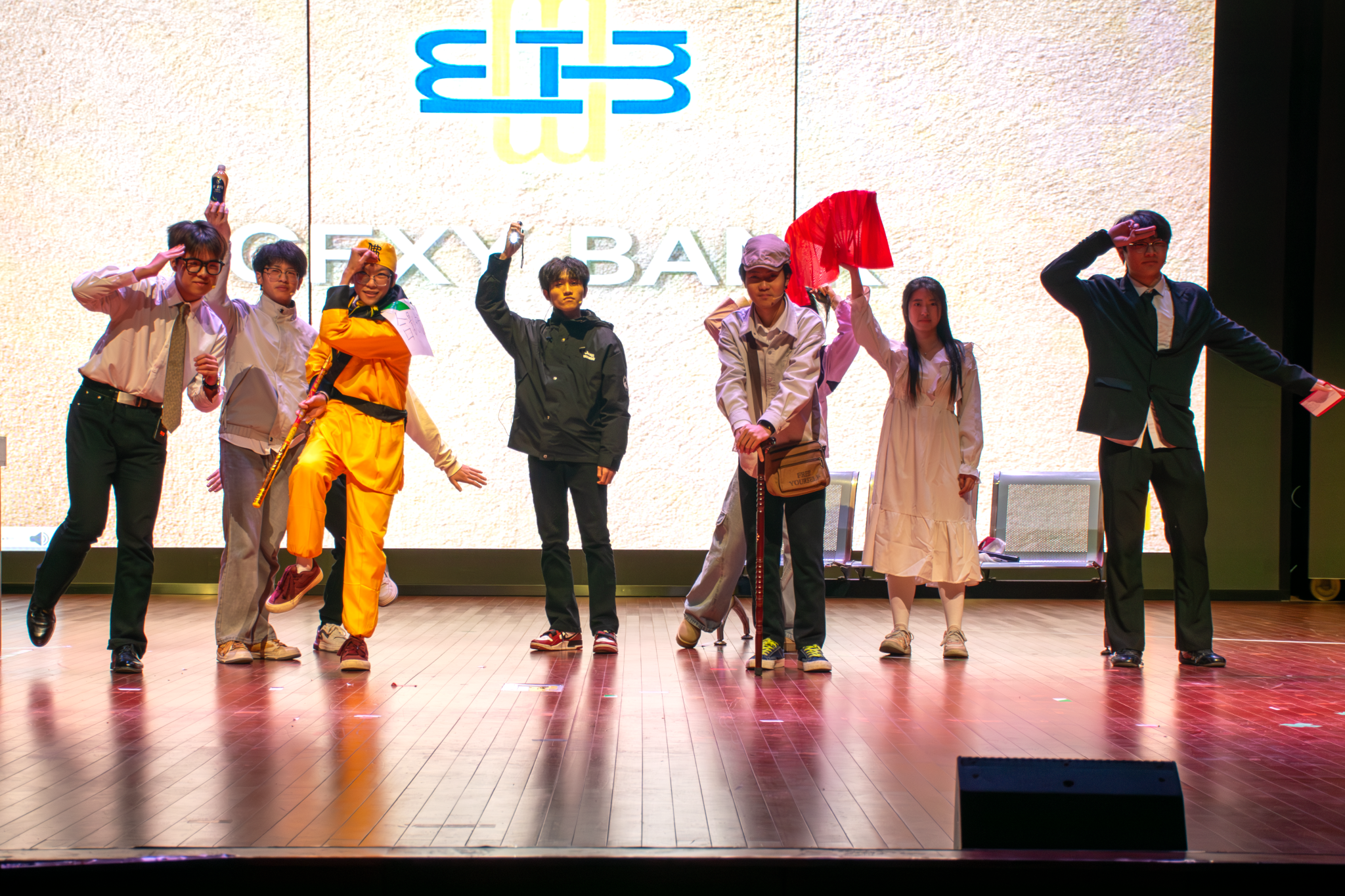 随后的文艺演出中,节目精彩纷呈。朗诵《师恩如锦,织梦成材》抒发深厚师生情与专业理想,小品《反诈银行》寓教于乐紧贴现实,情景剧《红心织梦:党旗下的“纱线医生”》融合专业特色与红色传承,彰显使命担当。最终全场合唱《相亲相爱的一家人》将晚会推向高潮,寄托对新年的美好期待。