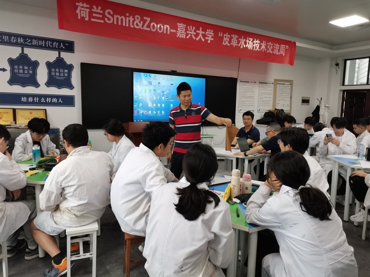 应老虎机 轻化工程系邀请,荷兰Smit&Zoon公司徐建平副总经理、姜本红工程师、陈小江经理及范观水工程师于6月3日至6月7日莅临轻化工程智慧实验室指导产业课程之《生产实习》,开展“皮革水场技术周”。轻化(实验)211班全体学生、轻化工程系全体教师参加了该项活动。活动主要由马贺伟老师负责。
