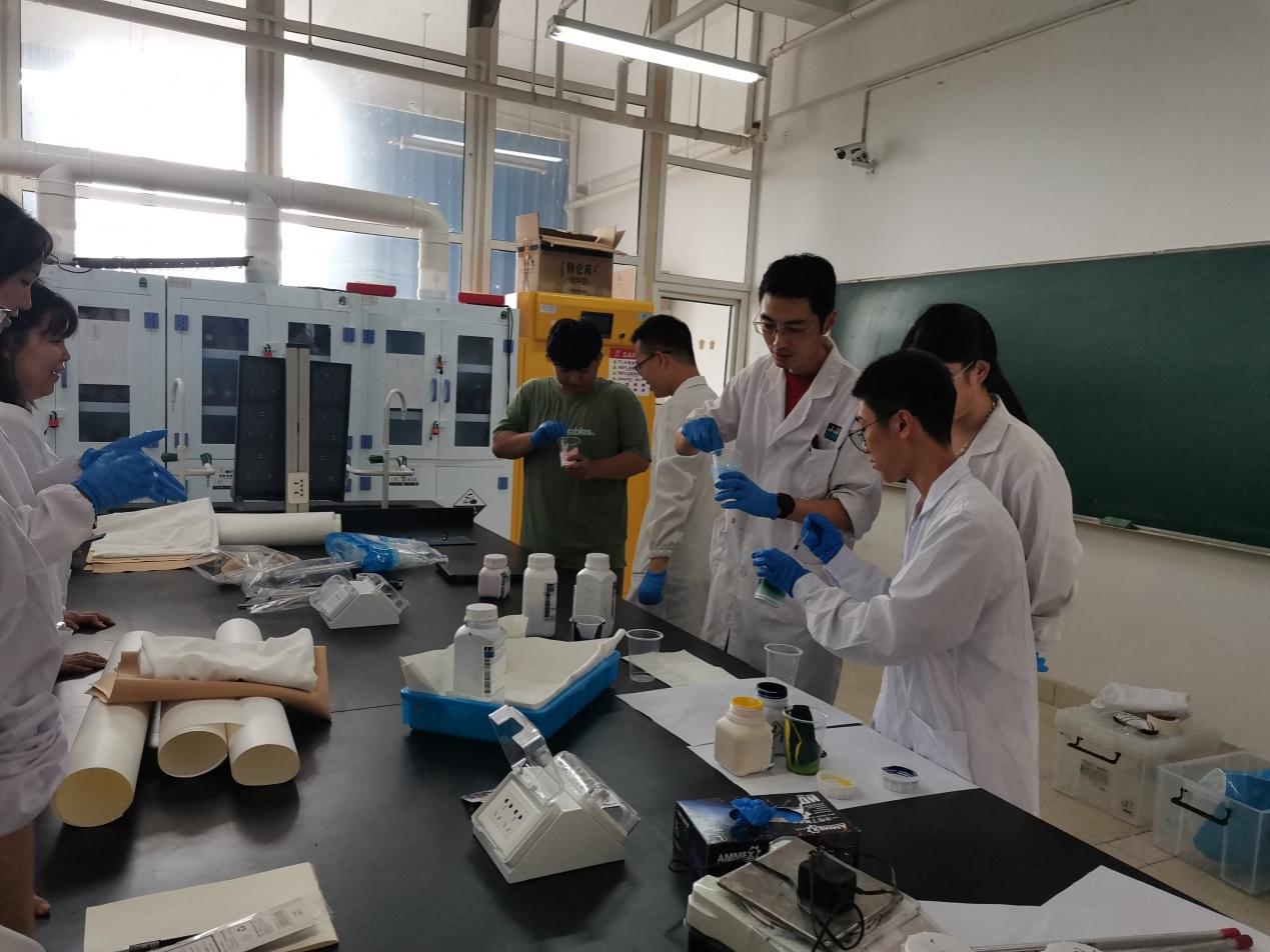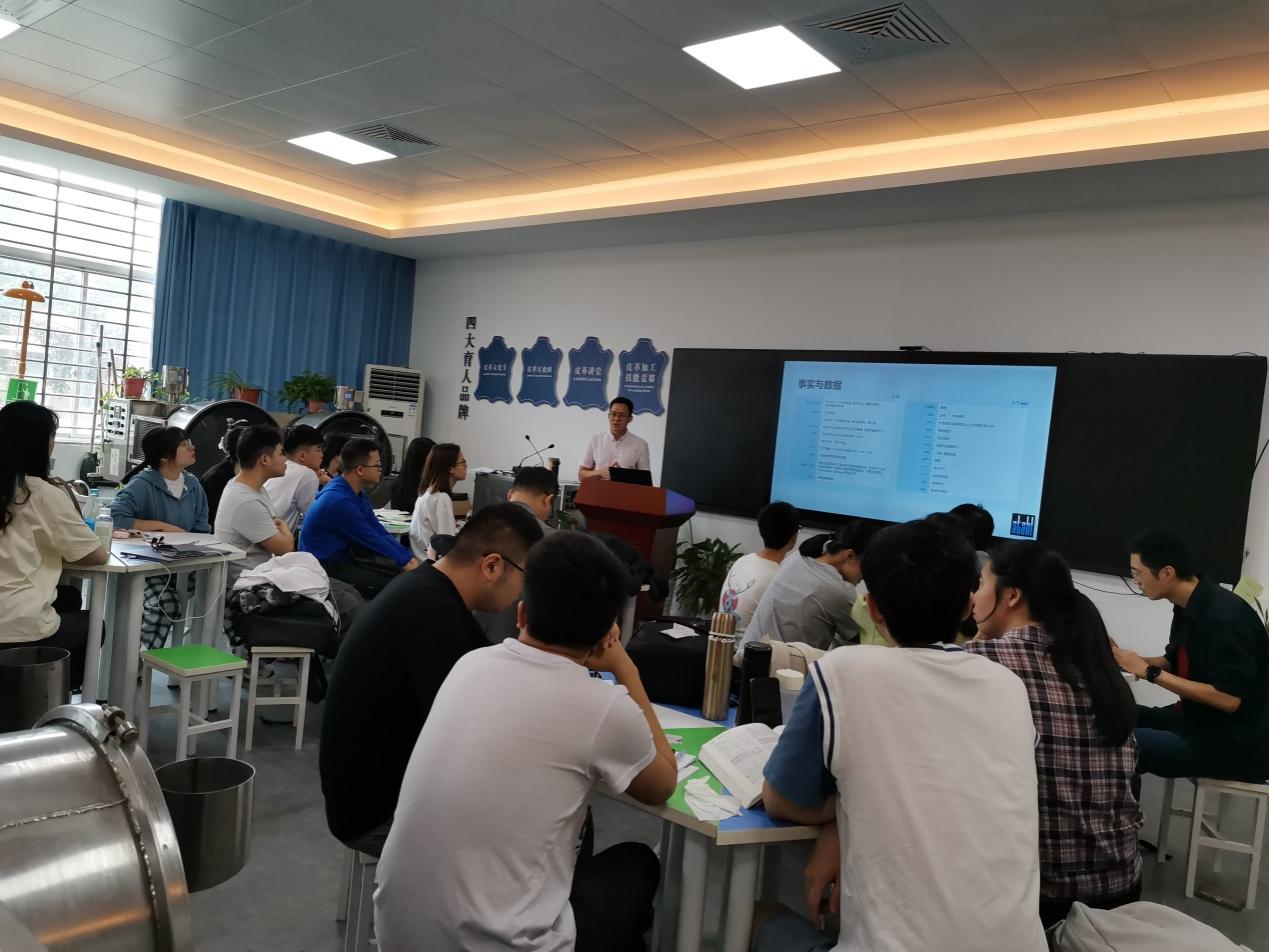 罗建勋老师致欢迎词并带领客人参观了老虎机 轻化工程智慧实验室,介绍了老虎机 轻化工程专业发展历程、现状及十四五发展规划。李克弯经理等就STAHL公司的发展历程、皮革涂饰、合成革制作技术等方面给师生们做了深入的讲解。随后,指导学生们进行合成革设计与制作实验,通过动手实操的切身体会,使每个学生充分学习与体会到合成革与天然皮革在制作工艺方面的异同。最后,进行实验成果展示和技术总结。