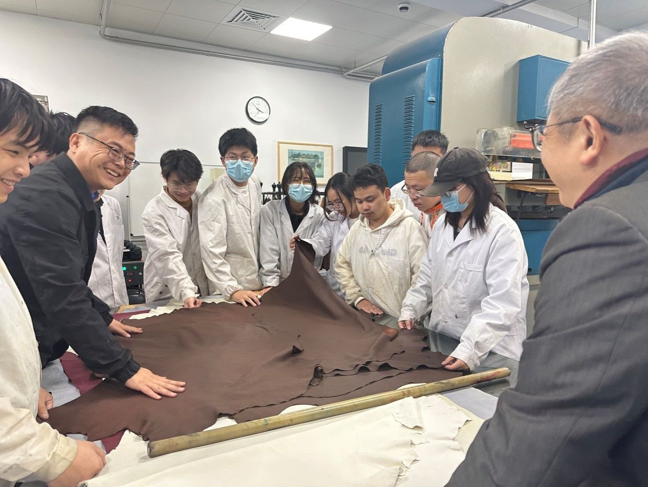“皮革水场技术交流周”以市场最新清洁化制革技术之无铬鞣绵羊皮服装革的设计与制作为主要内容,由校内外导师联合指导学生们基于浸酸绵羊皮进行鞣制、湿整饰工艺的设计与实施。期间,吴仲蓬经理还讲解了目前市场上的系列无铬鞣剂及其鞣制后皮革的特点。“皮革涂饰技术交流周”以无铬鞣服装革涂饰工艺的设计、全粒面黄牛鞋面革、双色黄牛油蜡鞋面革、紫红色水晶革等的涂饰为主要内容,由校内外导师联合指导学生们对无铬鞣绵羊皮服装革等进行了涂饰工艺的设计与实施,并进行了山羊鞋面革涂饰工艺的DIY设计与实施。期间,王鑫经理和陈碧云经理围绕当前主流的皮革产品的涂饰技术要求进行了讲授。在交流周后期,以组为单位就交流周的全部内容进行了汇报与深入讨论,特别是不同类型的皮革涂饰工艺的设计、过程中遇到的问题及对应的解决方法。另外,罗建勋教授就轻化工程智慧实验室和轻化工程专业的发展和现状进行了详细介绍,就与德赛尔新材料科技有限公司、STAHL公司、PieLcolor公司的进一步深度合作进行了深入的交流,并代表轻化工程系赠送了红船模型和专业文创产品。