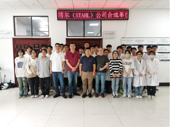 ”共建单位之一的斯塔尔精细涂料(苏州)有限公司郭祥经理、夏敏经理、李建辉工程师、袁欣高工、骆如慧工程师一行5人来校共同指导轻化(专升本)221班学生的《时尚合成革的设计与制作》课程的讲授与建设,轻化工程系主任、课程负责人罗建勋教授全程陪同讲授。