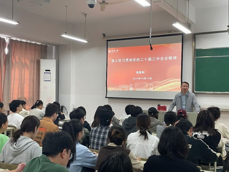 10月11日下午,老虎机 邀请马克思主义老虎机 副教授张胜利作学习贯彻党的二十届三中全会精神宣讲。60余名学生党员参加宣讲会,会议由辅导员马保国主持。