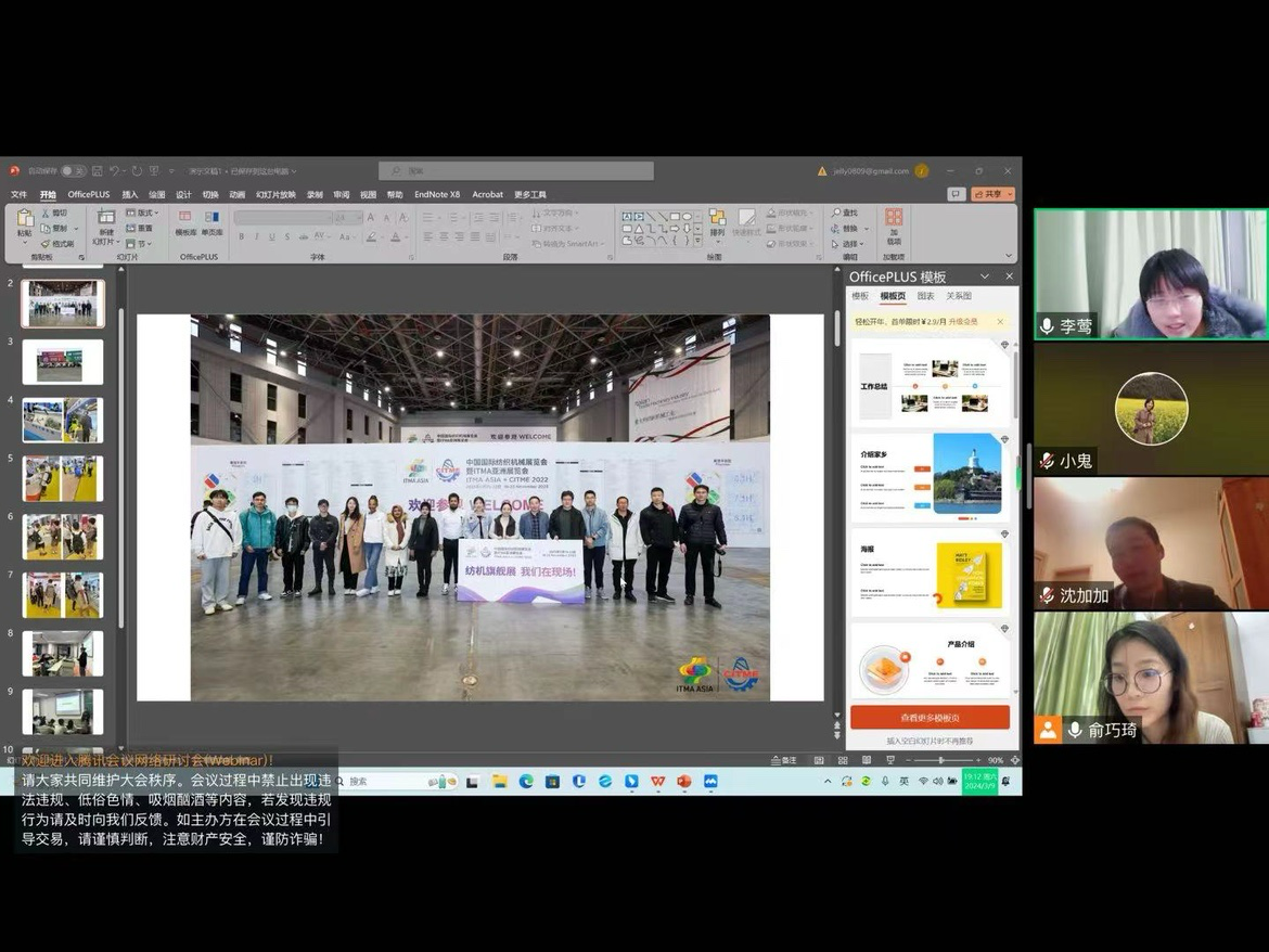 纺织系成功召开了2023级本科生线上家长会。纺织工程系主任沈加加老师、2023级本科班主任李莺老师、刘连梅老师、俞巧琦老师以及学生家长共同参加本次会议,会议由俞巧琦老师主持。
