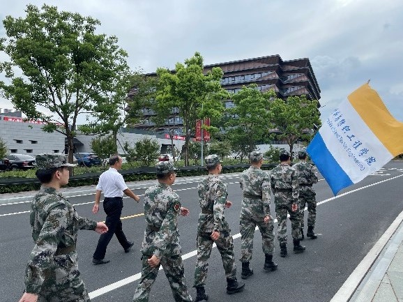 退伍高材生身着整洁的军装、踏着整齐划一的步伐走向军训场地,他们首先为军训新生送上清凉慰问品,并以军人的标准为军训新生做示范动作,齐整如一,新生为之惊叹,现场响起了阵阵掌声。随后,退伍老兵谷班长带头分享了军营故事,从军营生活到军事演习再到抗洪抢险一线,同学们听得津津有味,他们用军营故事让同学们透彻地理解了军训的意义。在现场的参训学生深受感染,罗滨洋说:“‘兵哥哥们虽然戎装已退,但通过军事示范动作和军营故事,我深深地体悟到他们依然保持一颗红心、一腔热血、一身正气,我要汲取他们敢于担当、不断超越自我的精神,在青春的赛道上跑出红船学子的风采。”