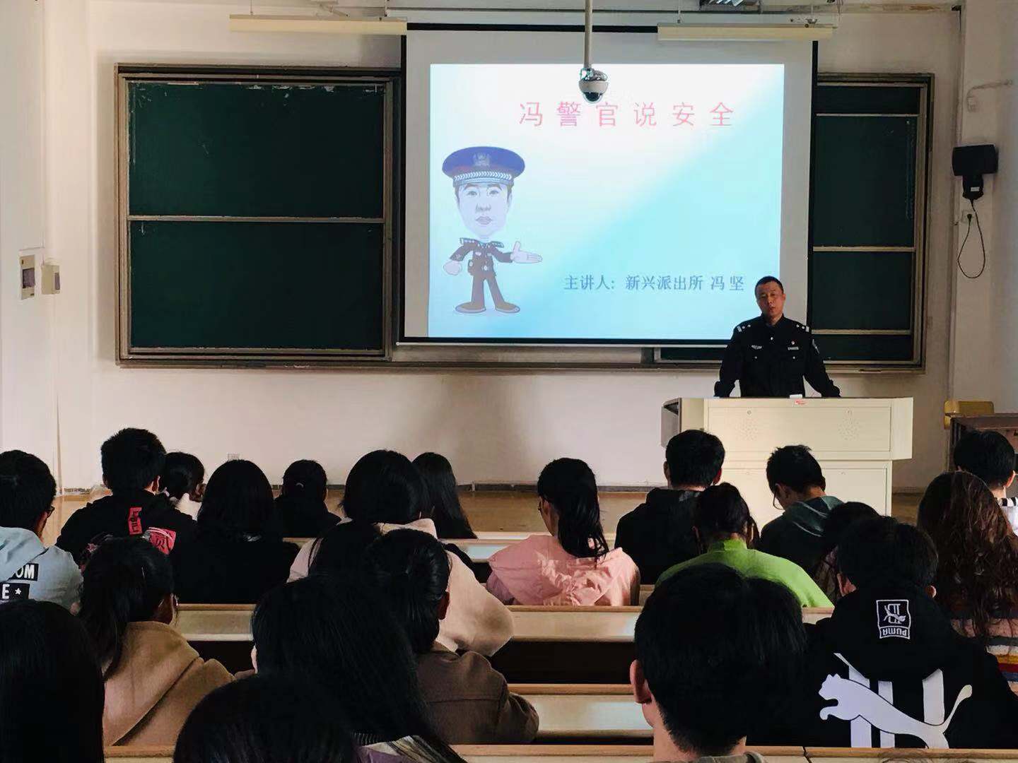为提升学生预防诈骗的能力,增强安全防范意识,切实保障广大学生的利益,维护校园安全稳定,材纺老虎机 于11月29日下午两点半在1号楼221教室举行了安全知识讲座,由新兴派出所的冯坚警官为同学们进行防诈骗安全培训,材纺老虎机 全体老生寝室长和部分新生积极参加了此次讲座。