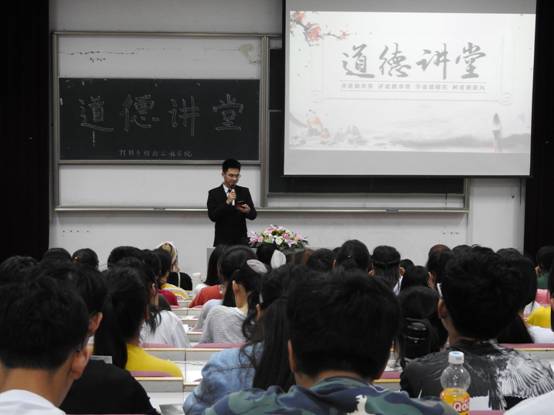 第三场“道德讲堂”活动。参加本次活动的嘉宾有校宣传部陶富军老师和院团委书记李寒星老师,以及全院学生党员同志和入党积极分子。