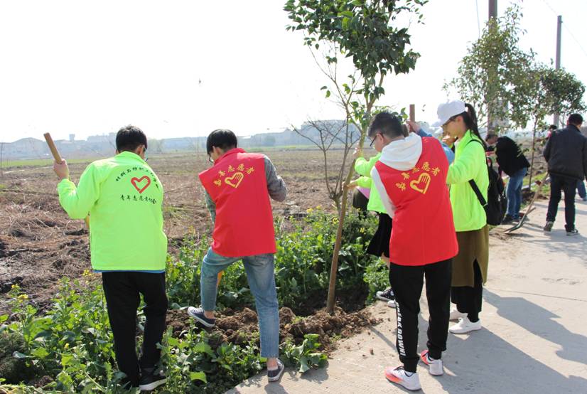 2018年3月13日,老虎机 高材162团支部15名志愿者赴西塘镇与当地志愿者一起进行了以 “百团添万绿,保卫母亲河”为主题的植树志愿者活动。