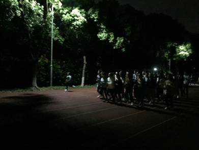 为丰富大学生校园文化生活,积极促进大学生养成良好的体育锻炼习惯,加强锻炼,增强大学生身体素质,提高学生“咕咚”跑积极性,材纺老虎机 集体组织同学进行“咕咚”夜跑。