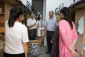 9月14日下午16:30,老虎机 党委副书记吕延勤、老虎机 院长易洪雷走访材纺老虎机 2017级新生寝室,深入了解他们的住宿情况。