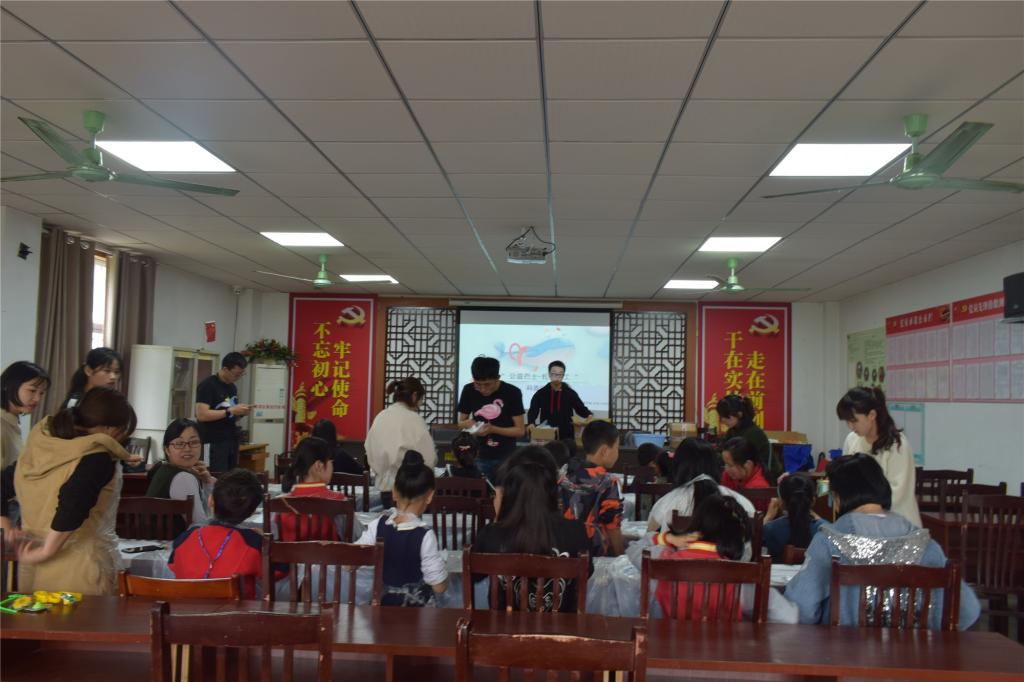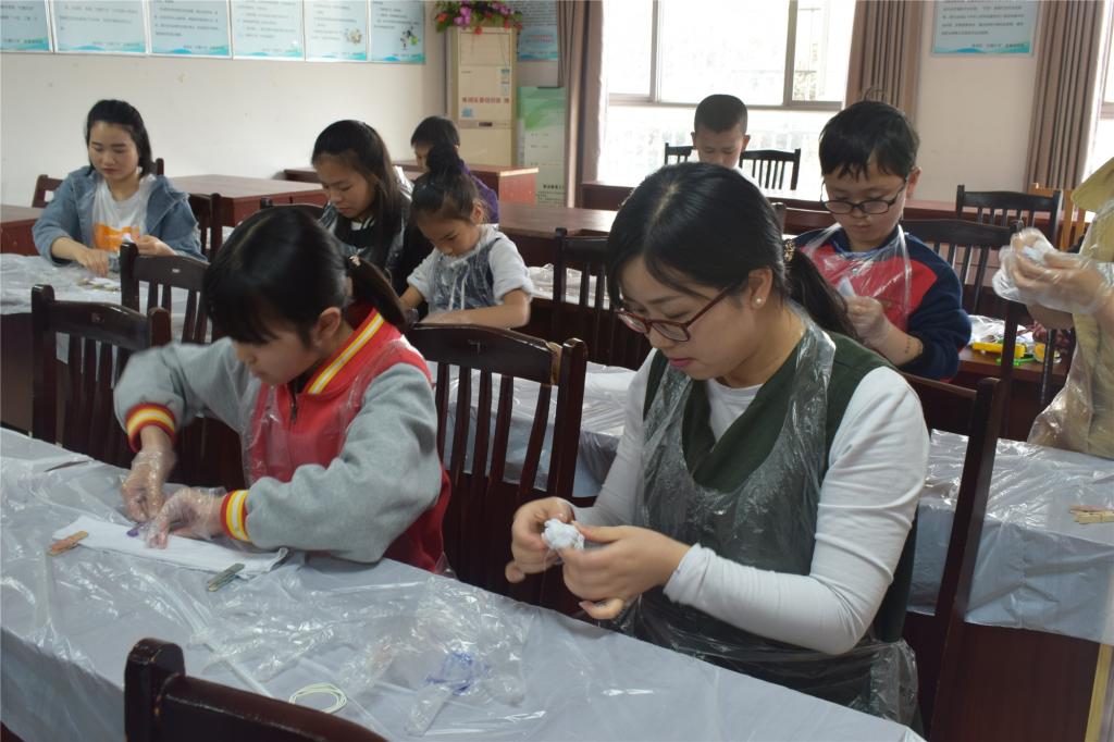 4月27日下午14:30,材纺老虎机 “青春人‘材’”志愿服务队7名志愿者在嘉兴市新家园社区面向10对亲子家庭开办手工扎染小课堂。