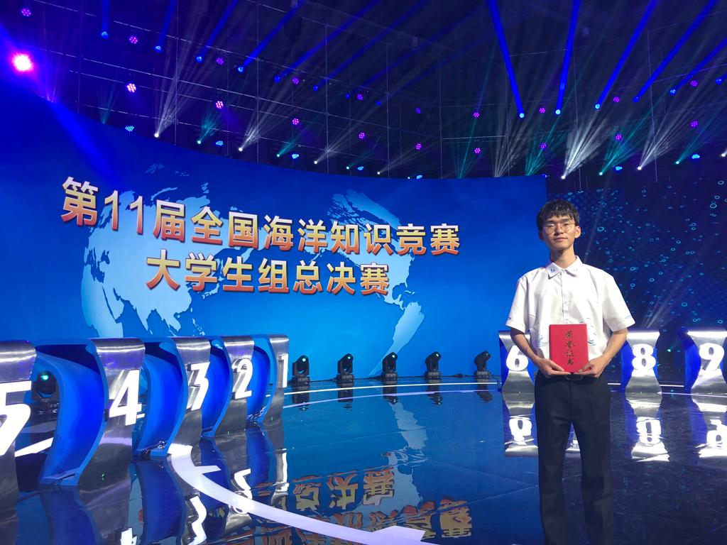 取得了参加全国总决赛的资格。经过“一锤定音”,“不可多得”,“智者无敌”等多个环节,徐晓飞同学以总分第一的成绩进入30强,虽然没能进入最后的10强决赛,但也展示出了其丰富的海洋知识储备和现场表现能力。