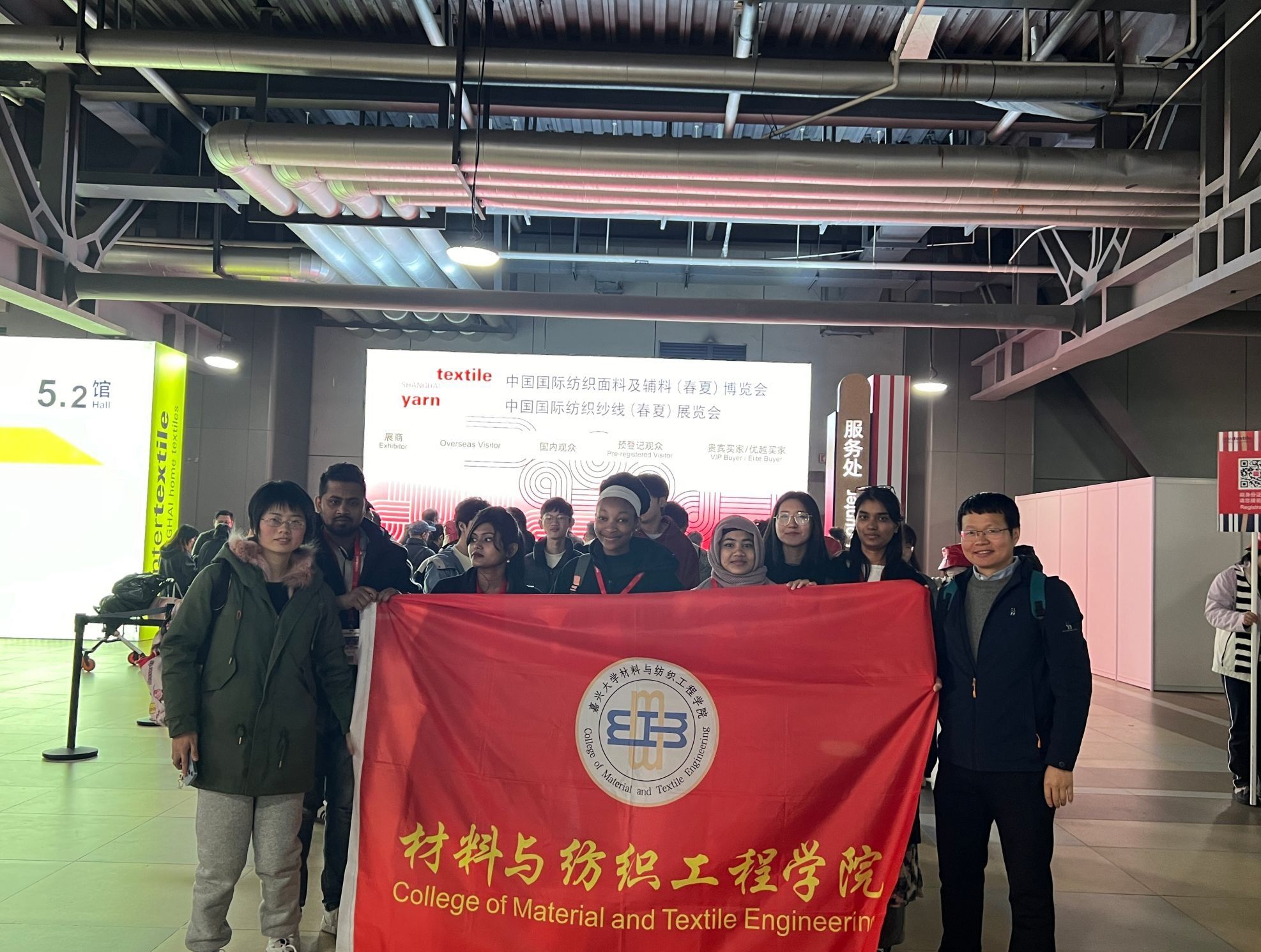纺织工程专业组织2023级纺织工程本科生以及国际留学生先后赴上海国家会展中心和浙江台华新材料股份有限公司进行了参观活动。本次活动由纺织工程专业教师黄立新、杨恩龙、谢胜、李莺、刘连梅带队完成。
