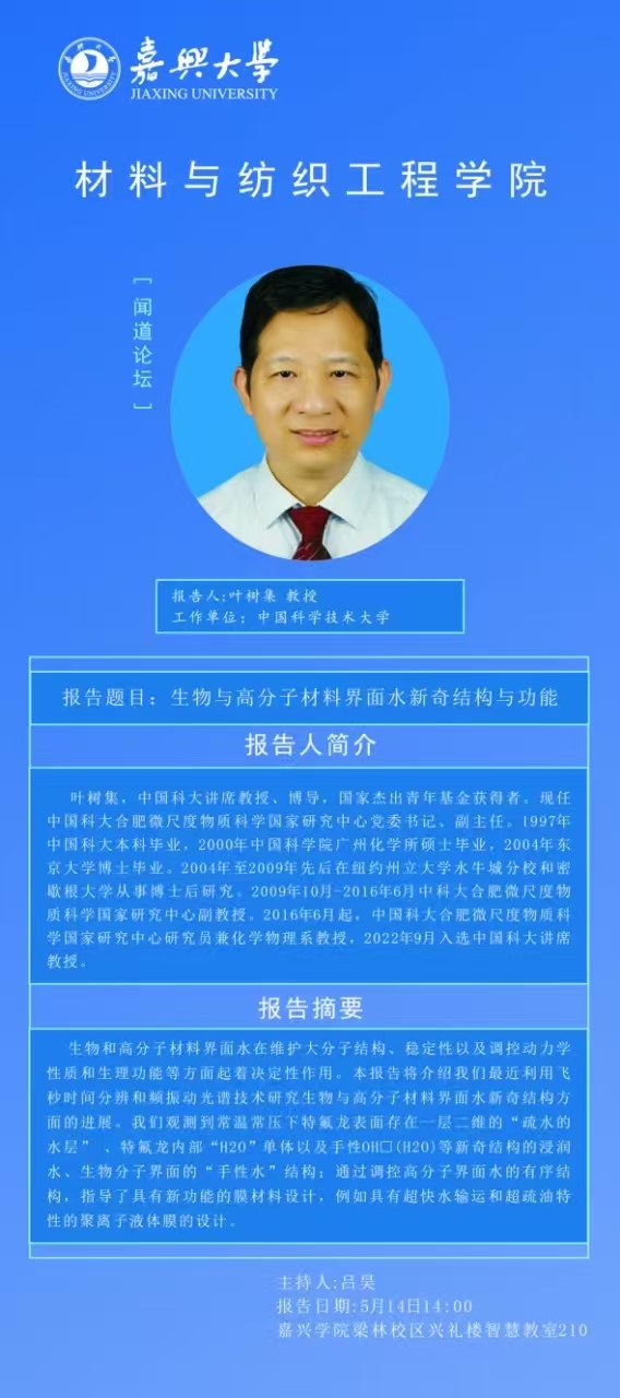 【学术预告】闻道论坛第2讲:生物与高分子材料界面水新奇结构与功能