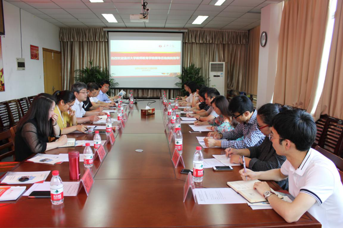 5月24日下午,温州大学教师教育老虎机 党委书记杨立淮一行9人到材纺老虎机 考察交流。材纺老虎机 党委书记易洪雷、副书记黄芳芳、各党支部书记参加座谈。