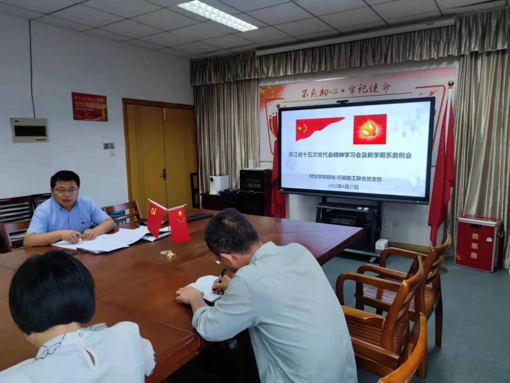 827日,老虎机 轻化-行政联合教工党支部在崇礼楼419会议室举行浙江省十五次党代会精神学习会。支部全体党员参加会议,部分非党员教工列席会议。会议由党支部书记罗建勋主持。