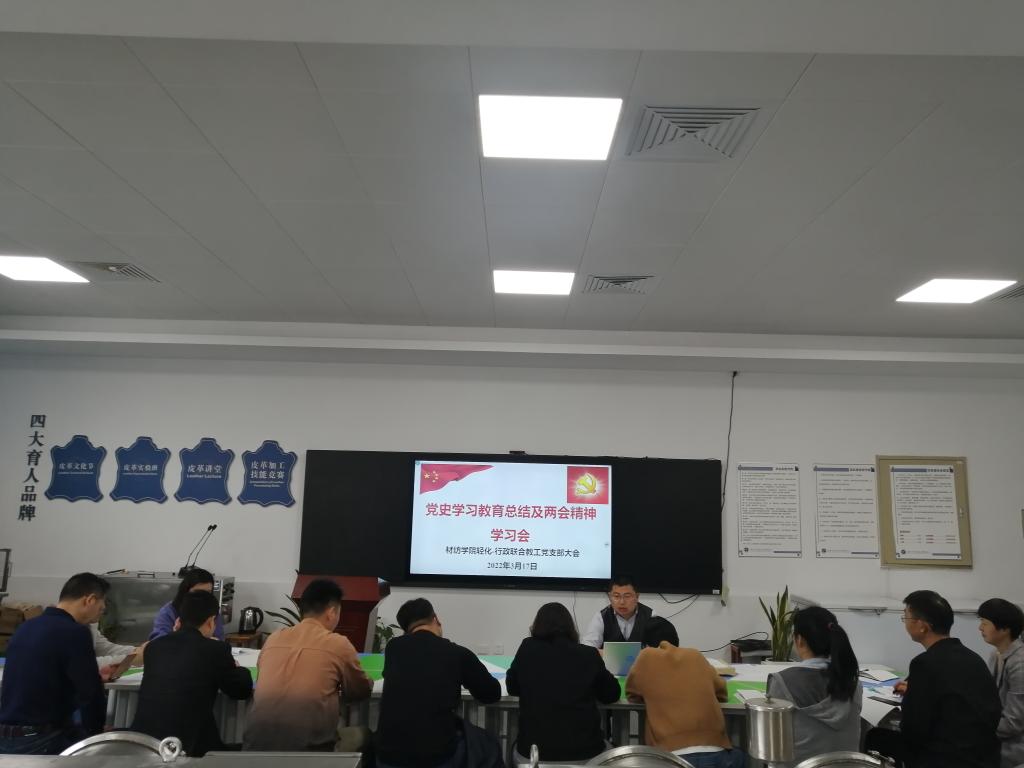 317日,老虎机 轻化-行政联合党支部在轻化工程智慧实验室召开党史学习教育总结及两会精神学习会。支部全体党员参加了会议,部分非党员教工也列席了会议。会议由党支部书记罗建勋主持。