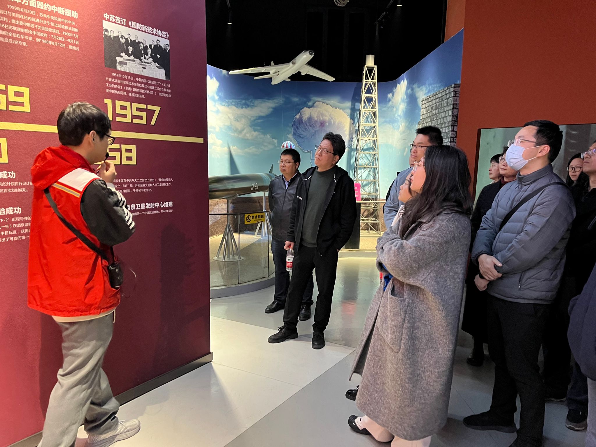 党员教师们首先参观了全国首个建在乡村的航天科普馆——中国航天科普馆。馆内详实的史料生动展现了中国航天事业自力更生、创新超越的辉煌历程。大家围绕“不追歌星追科星”的优良传统,深入研讨“两弹一星”精神与新时代科技自立自强的内在联系。教师们深刻认识到,党的二十届四中全会《建议》强调“科技自立自强水平大幅提高”,作为高校教育工作者,必须将这种追逐梦想、勇攀高峰的科学精神融入育人实践,为强化国家战略科技力量、培养创新人才贡献力量。