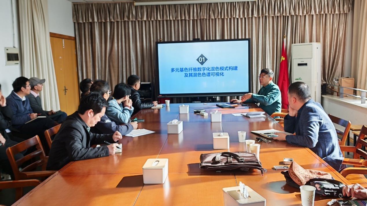 首先,薛教授以其在全色域混色模型及彩色纺纱技术领域的创新性研究实践为切入点,生动阐释了聚焦前沿、攻坚克难的科研历程。他详细介绍了相关技术从理论突破到应用转化的探索路径,展现了扎实的科研工作在解决行业关键共性技术问题中的核心价值。