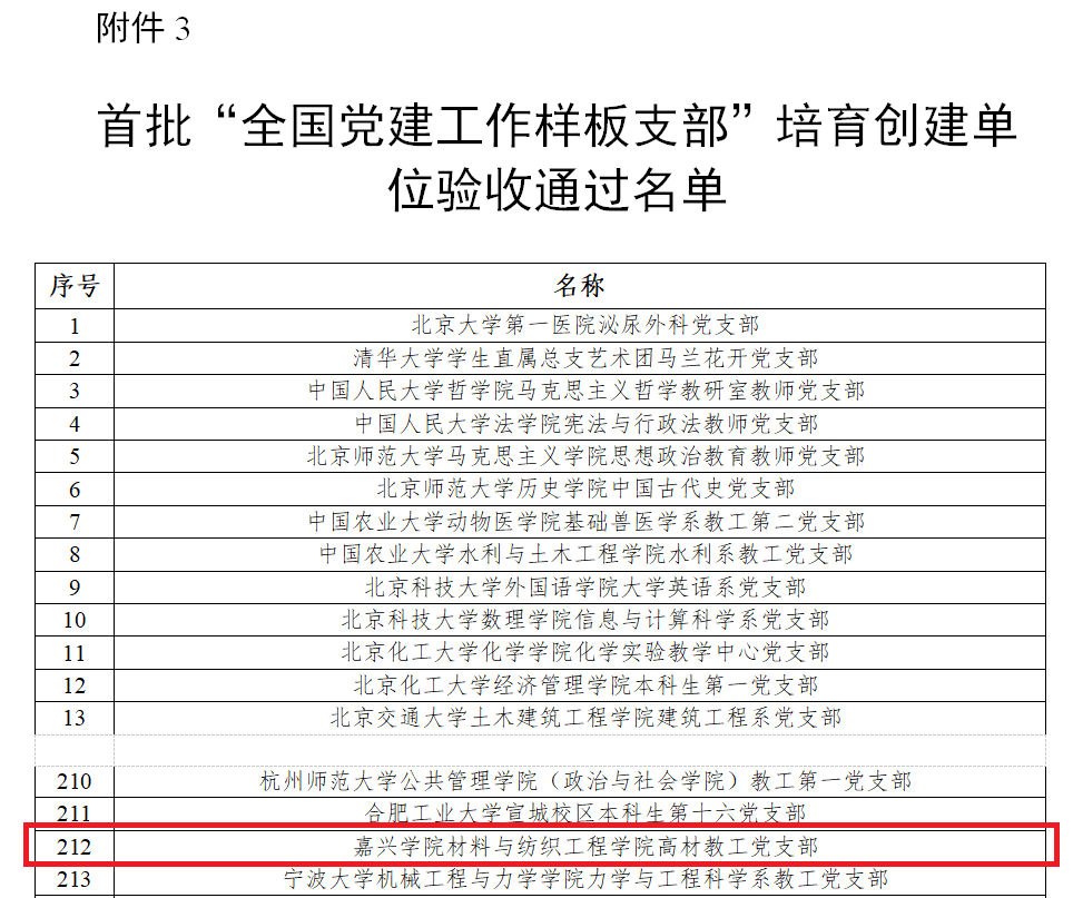 据悉,2018年12月,教育部办公厅印发《关于公布首批全国党建工作示范高校、标杆院系、样板支部培育创建单位名单的通知》(教思政厅函〔2018〕43号),确定10个高校党委、100个院系党组织、559个党支部为培育创建单位,老虎机
