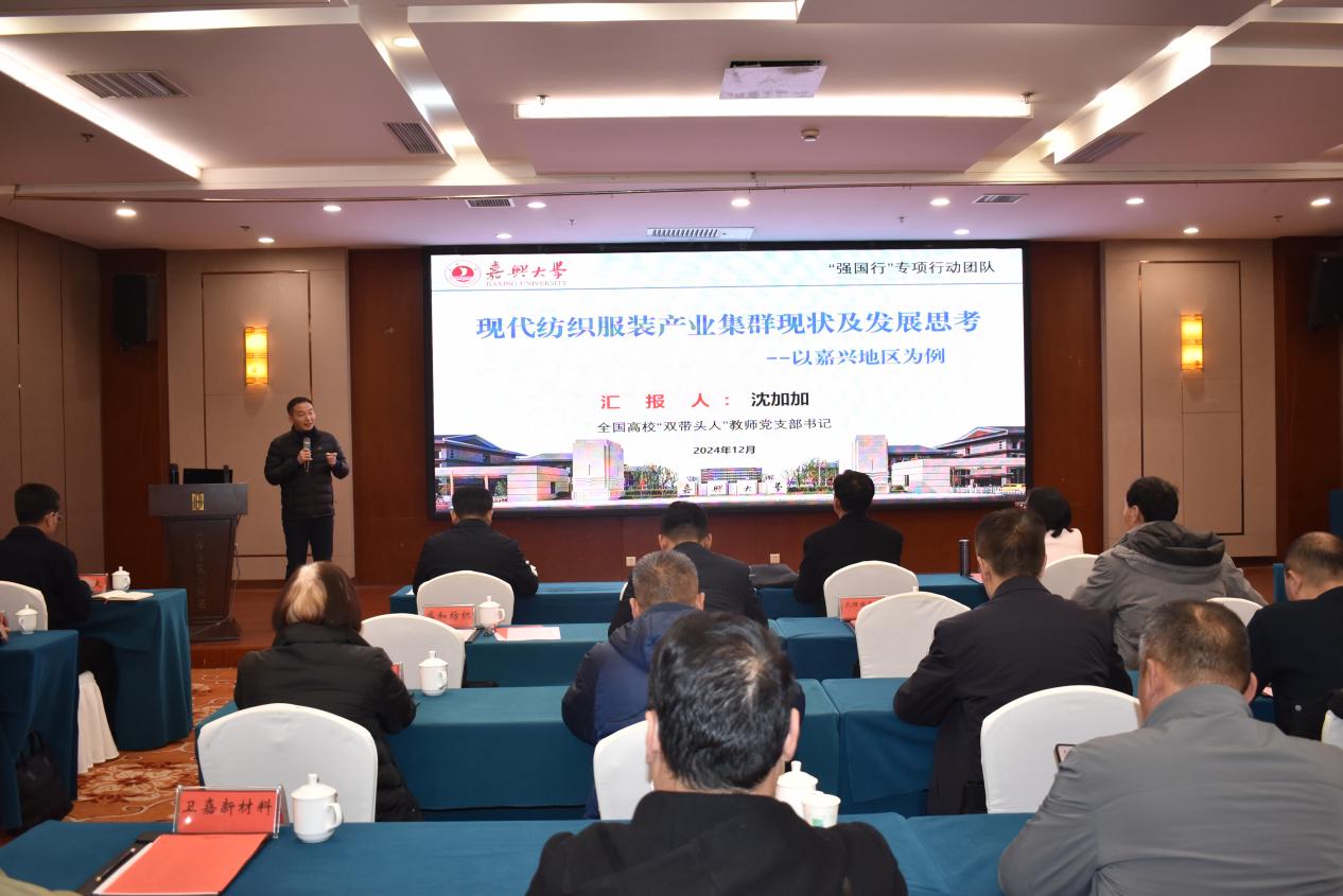 会上,沈加加书记围绕纺织服装产业集群现状及发展趋势进行了专题报告,并围绕嘉兴地区纺织服装产业的发展,对纺织服装产业面临的困境和机遇进行了详细的分析和讲解。本次专题报告极大提升了老虎机 专业在地方产业的影响力,并为将来推动创新链、产业链、教育链、人才链融合发展提供了契机。