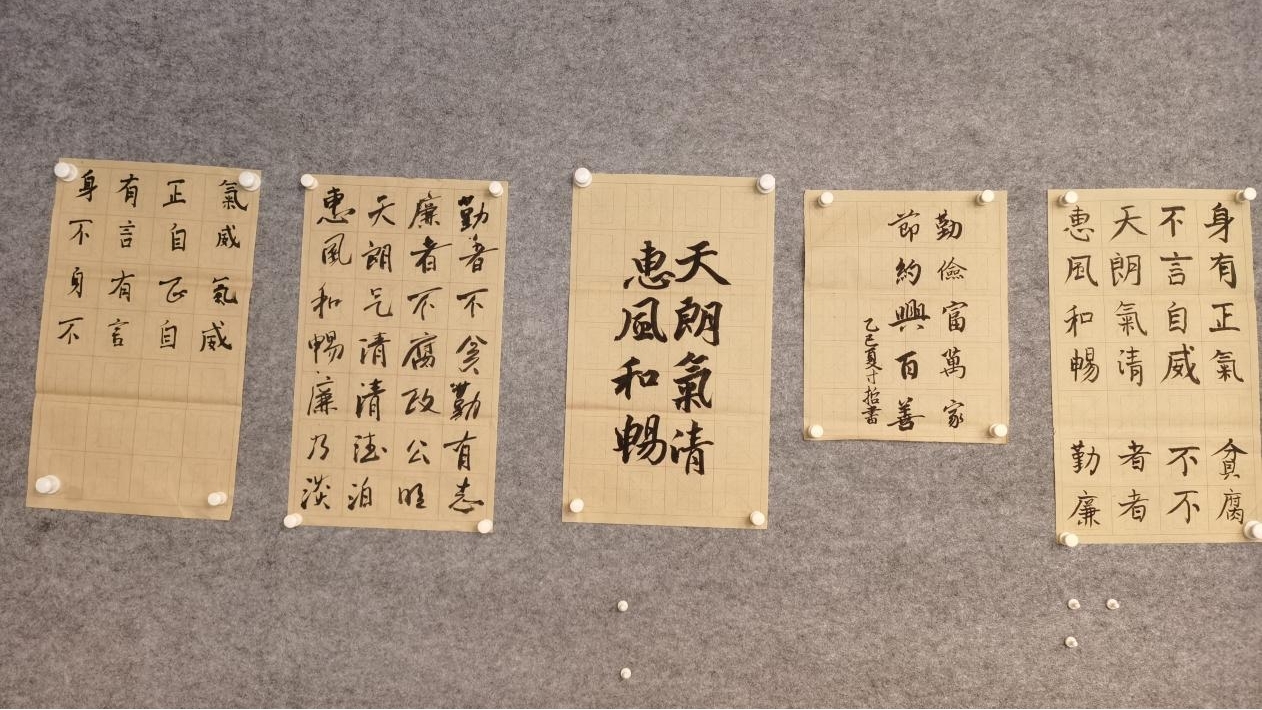 活动开始,支部首先集体学习了中央八项规定精神,重点围绕警示案例进行了学习和检视。随后,老师们以笔为“廉”发声,工整书写清廉相关经典诗文,通过“身有正气 不言自威”“天朗气清 惠风和畅”等经典名句将传统文化与廉洁教育有机结合。活动现场,老师们相互交流书写心得,在横竖撇捺间体悟廉洁真谛,在起承转合处铭记教育初心。