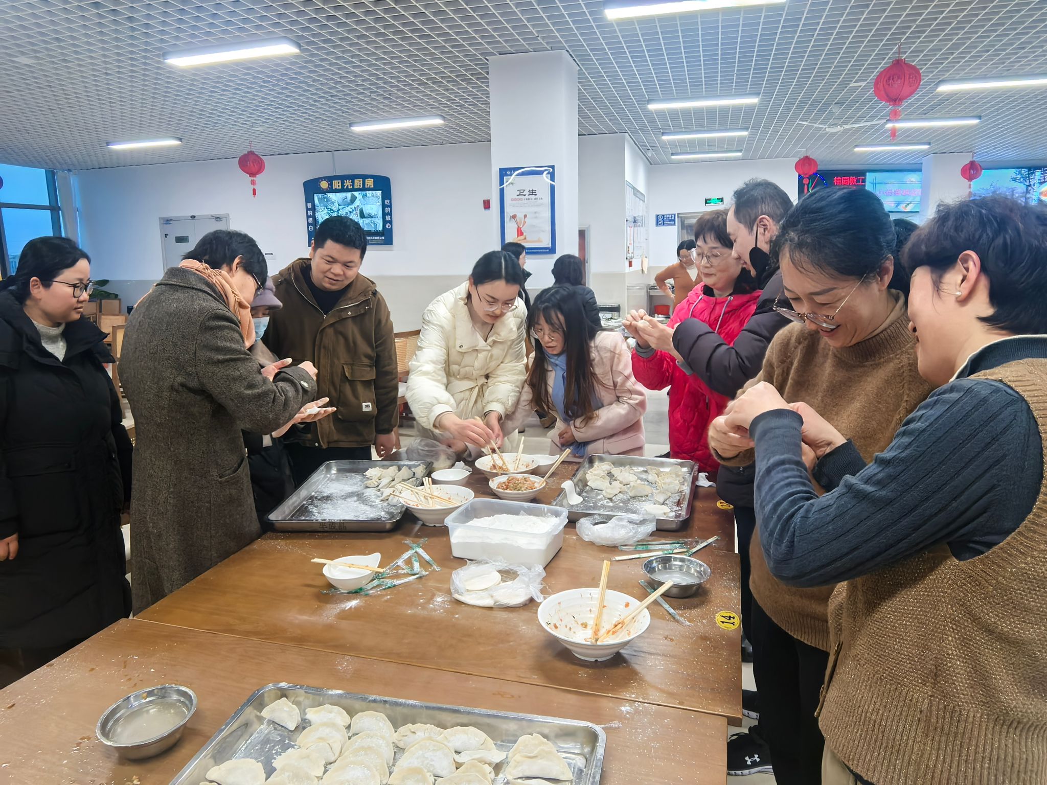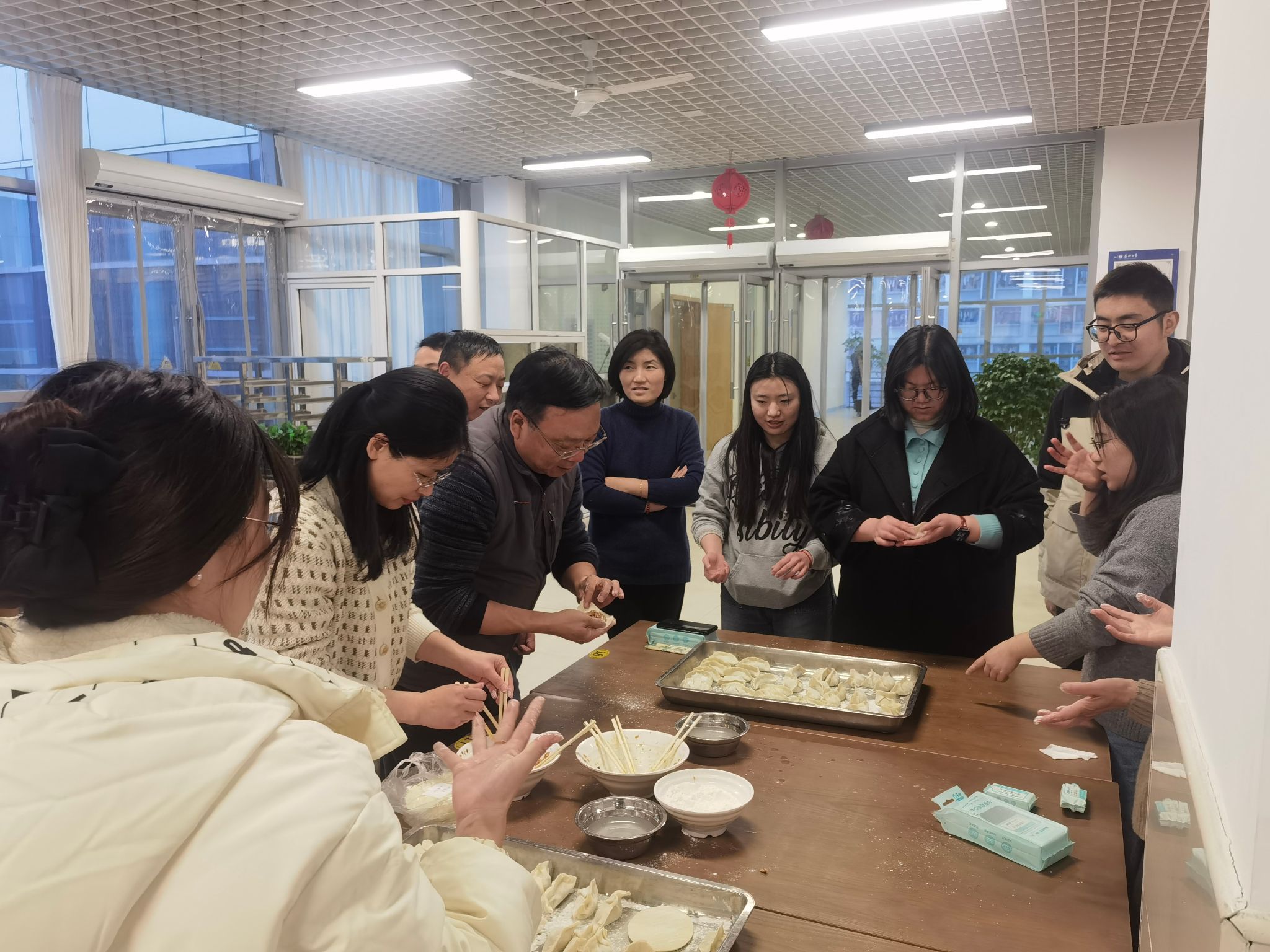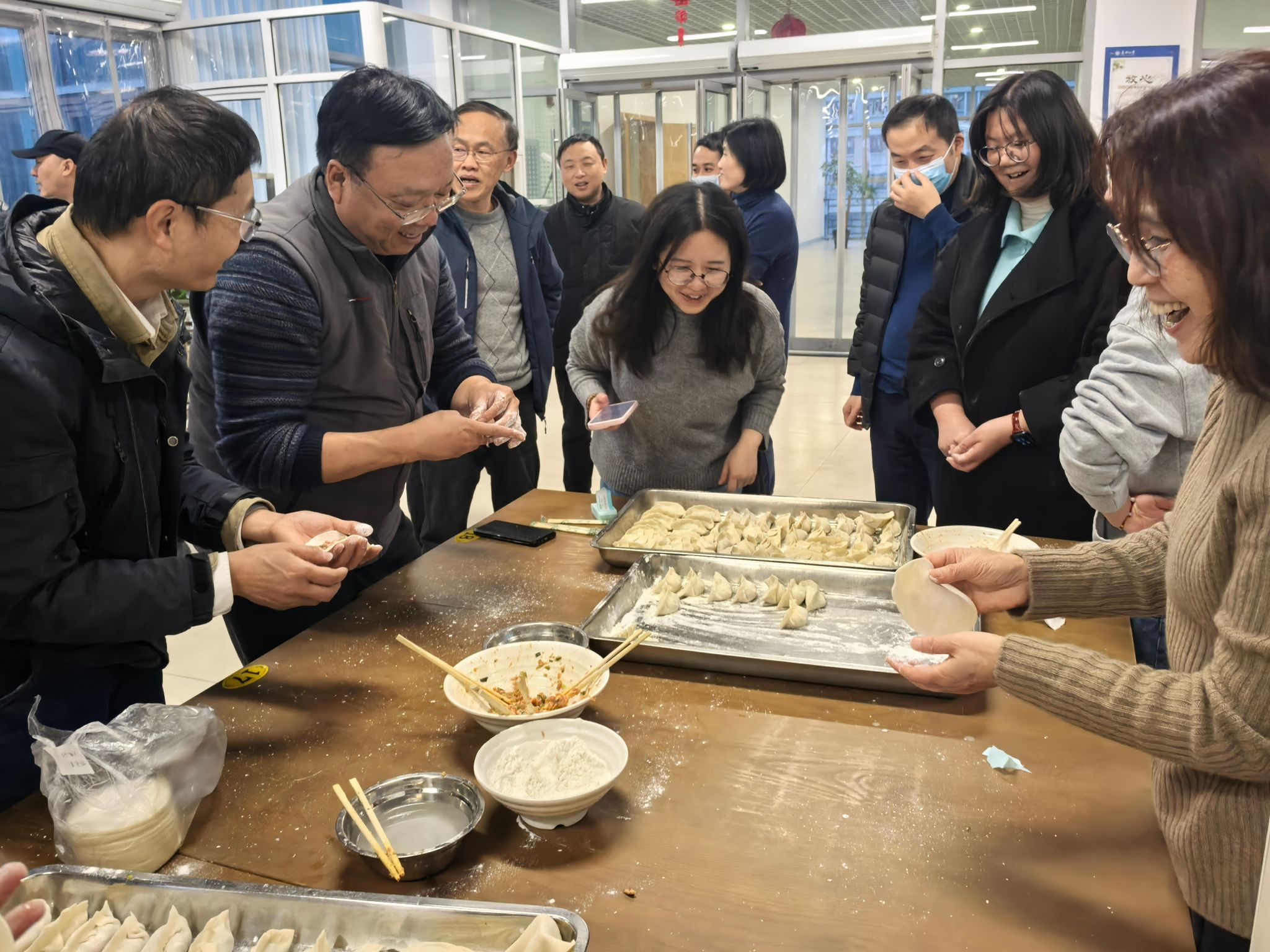 老师们边包饺子边聊天,话题从家庭、工作到未来展望,拉近了彼此之间的距离,增进了同事间的情谊。很快,热气腾腾的饺子出锅,大家围坐一起,津津有味地品尝着自己的劳动成果,现场充满欢声笑语。