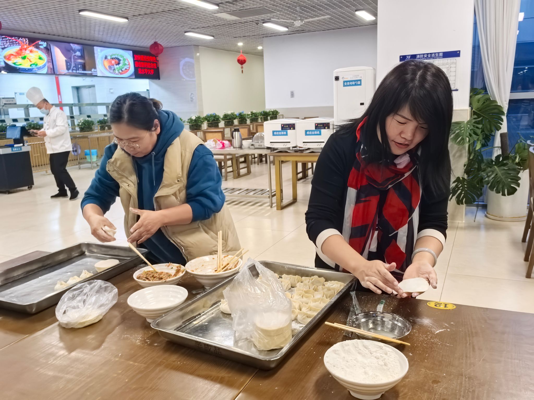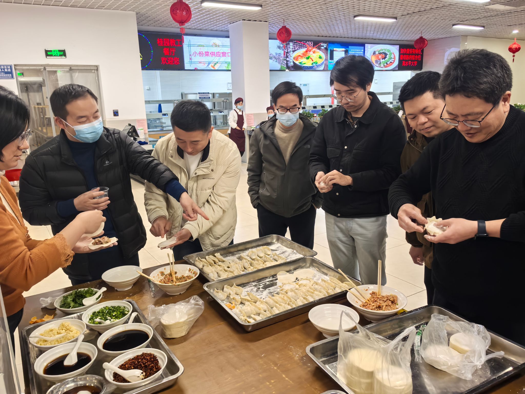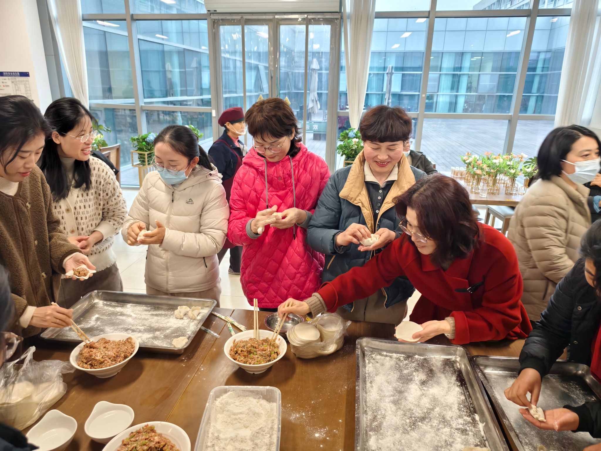 老师们边包饺子边聊天,话题从家庭、工作到未来展望,拉近了彼此之间的距离,增进了同事间的情谊。很快,热气腾腾的饺子出锅,大家围坐一起,津津有味地品尝着自己的劳动成果,现场充满欢声笑语。