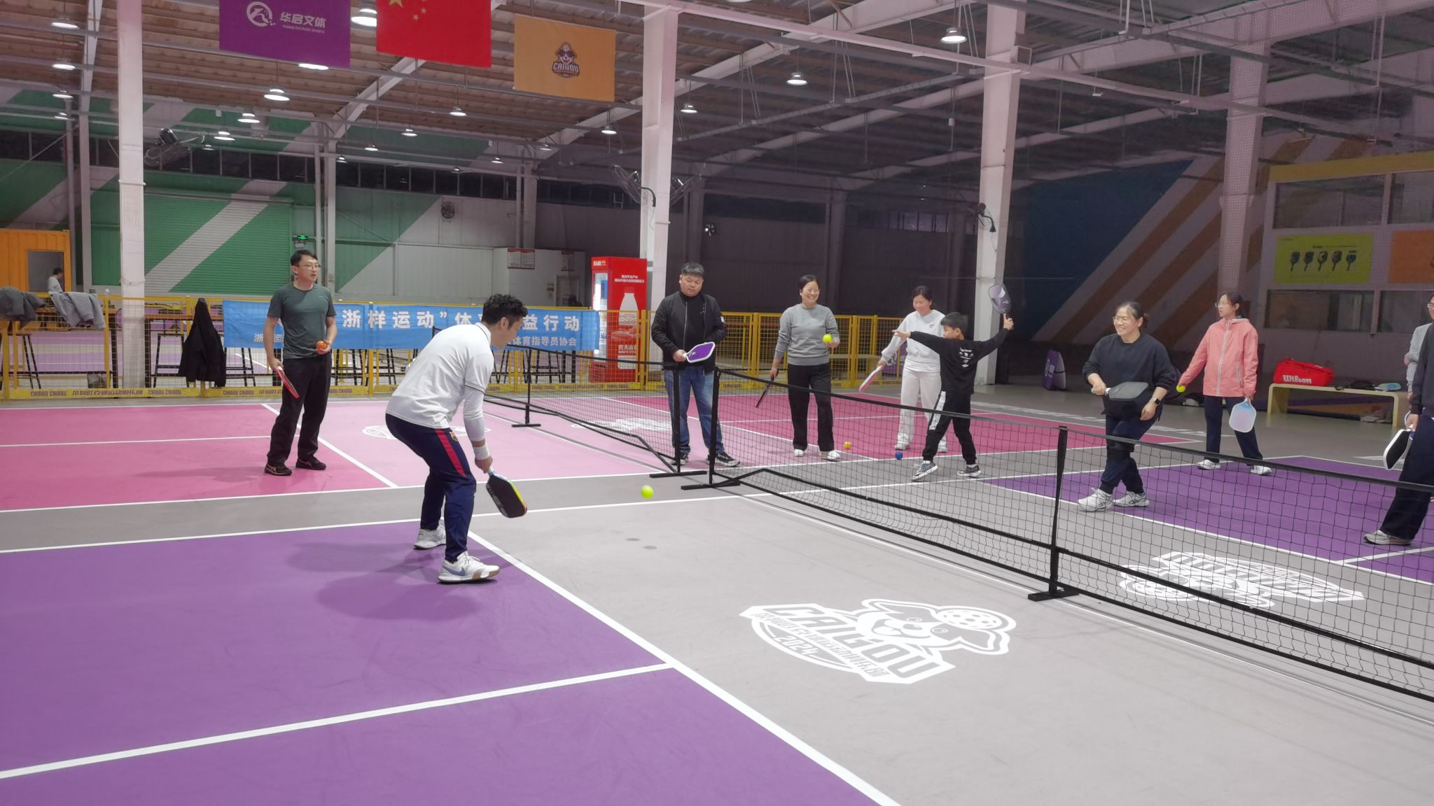 分工会邀请了教练进行现场培训。教练详细讲解了匹克球基础常识,拆解握拍、发球等动作要领,还针对练习中出现的问题逐一指导。老师们两两结对实操,进行了由近到远逐步加码练习,场馆内充满击球声与欢笑声。