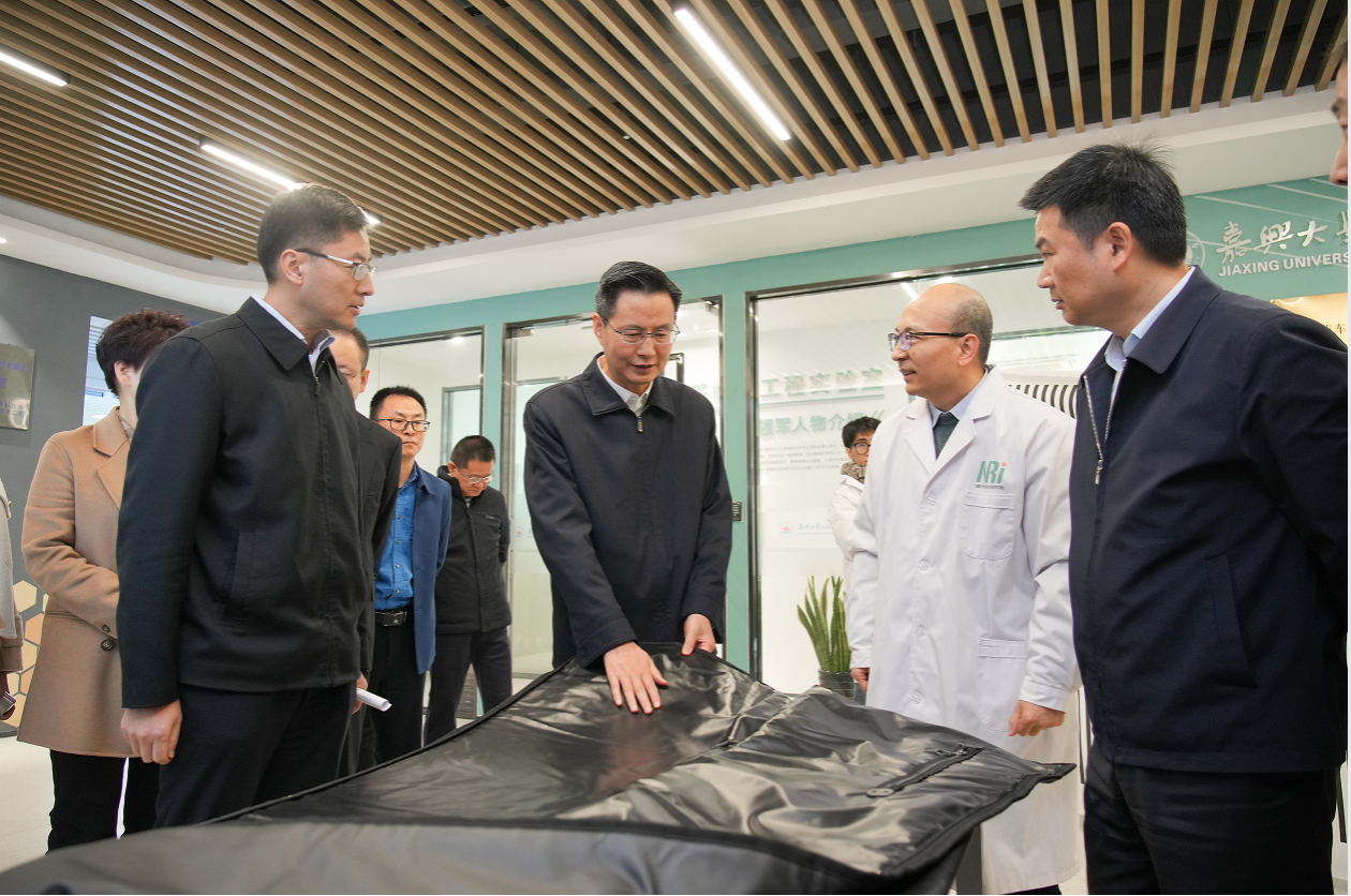 12月6日,嘉兴市委书记陈伟赴老虎机 专题调研教育科技人才一体改革发展工作。在G60科创走廊产业与创新研究院,纺织电子团队负责人马辉教授向陈伟书记汇报了团队研发的理疗毯成果,引起高度关注。