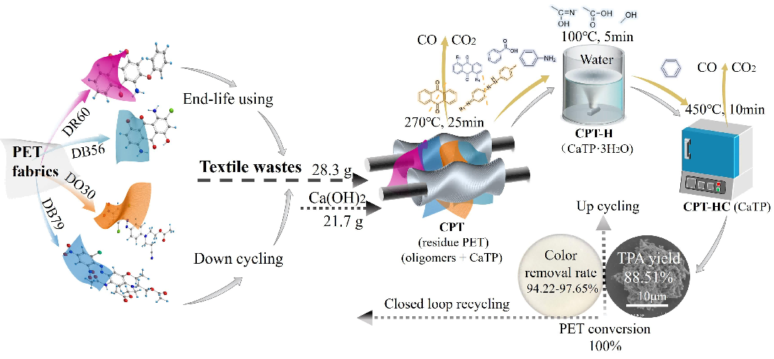Yanyan Li, Hongling Yi, Mingqiao Ge*, Donggang Yao*. Synchronous degradation and decolorization of colored poly(ethylene terephthalate) fabrics for the synthesis of high purity terephthalic acid [J]. Journal of Cleaner Production,2022, 132985. (IF=11.1, DOI: 10.1016/j.jclepro.2022.132985)